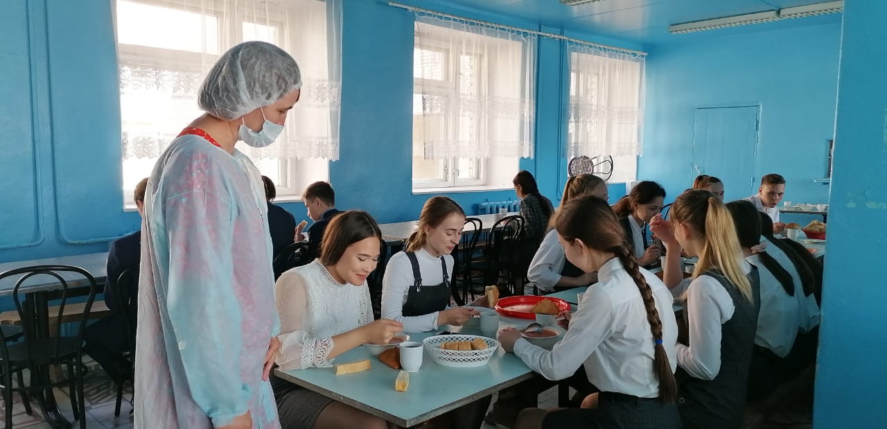 21.05 2021 столовую школы посетили представители родительской общественности с целью контроля организации горячего питания. Администрацией школы была проведена экскурсия по помещению столовой, ответственный за организацию питания Зайнетдинова Э.С. рассказала родителям о порядке питания в столовой, о принимаемых санитарных мерах, о процедуре контроля за качеством питания. Представители родительской общественности побеседовали с обучающимися школы, узнали мнение детей о вкусовых характеристиках приготовляемой пищи; побеседовали с сотрудниками столовой, ознакомились с представленным ассортиментом в столовой и буфете.