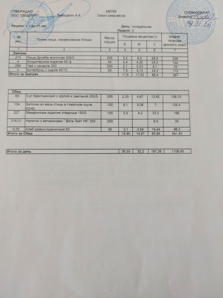 Меню на 19.01.2026
