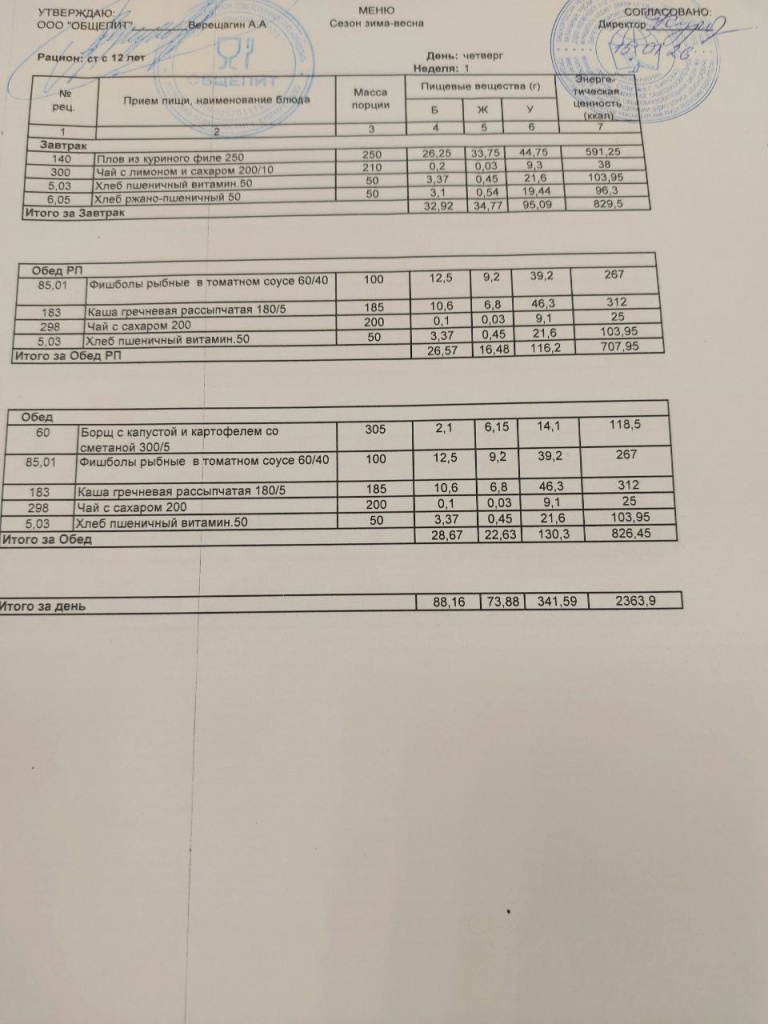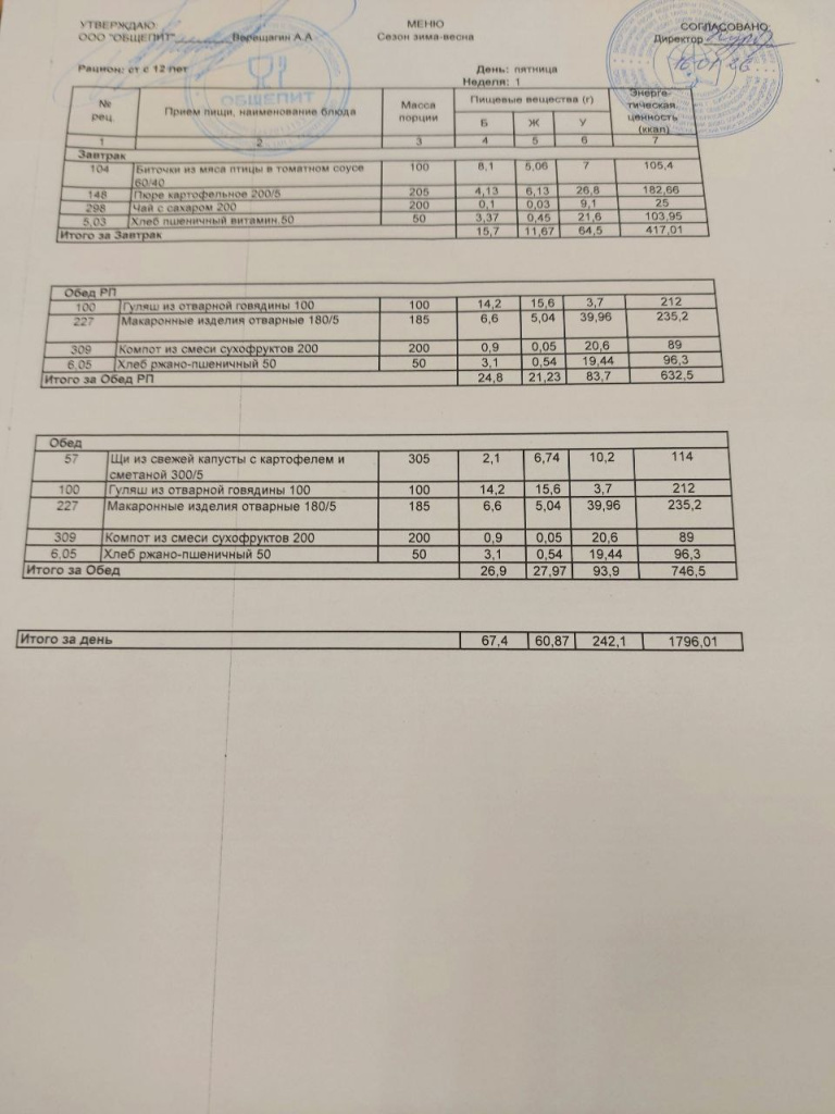 Меню на 16.01.2026