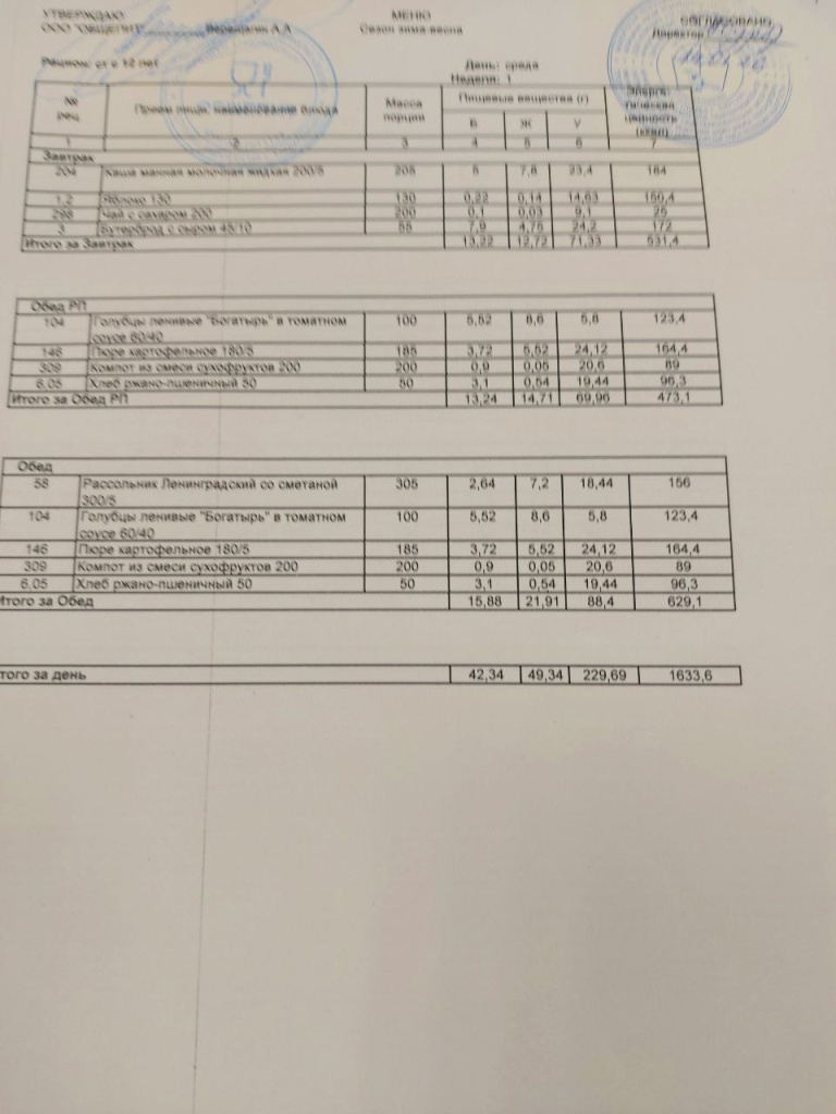 Меню на 01.12.2025