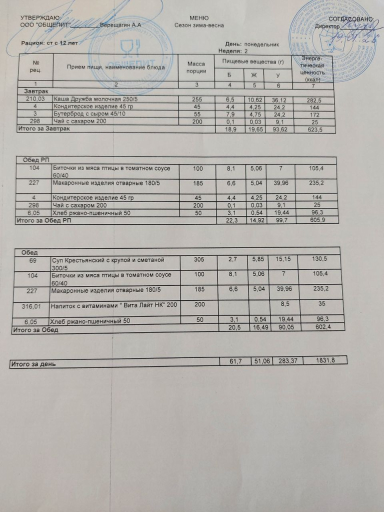 Меню на 16.12.2025