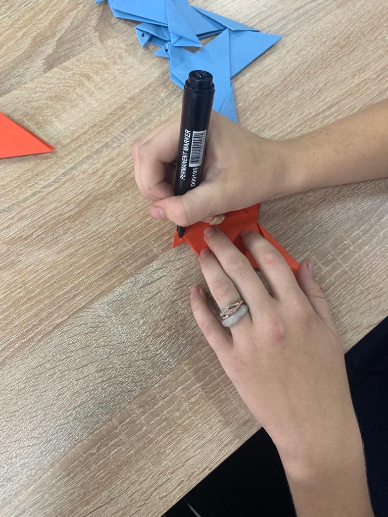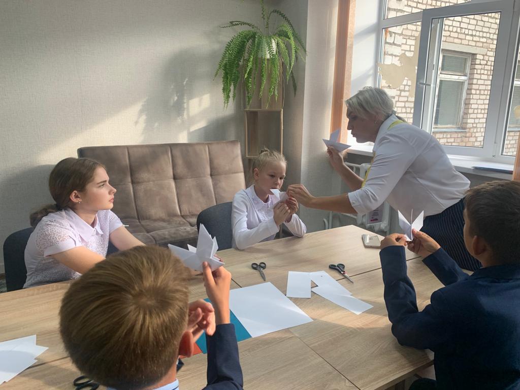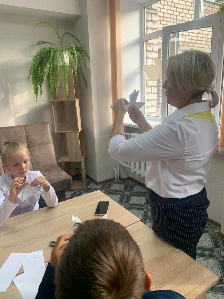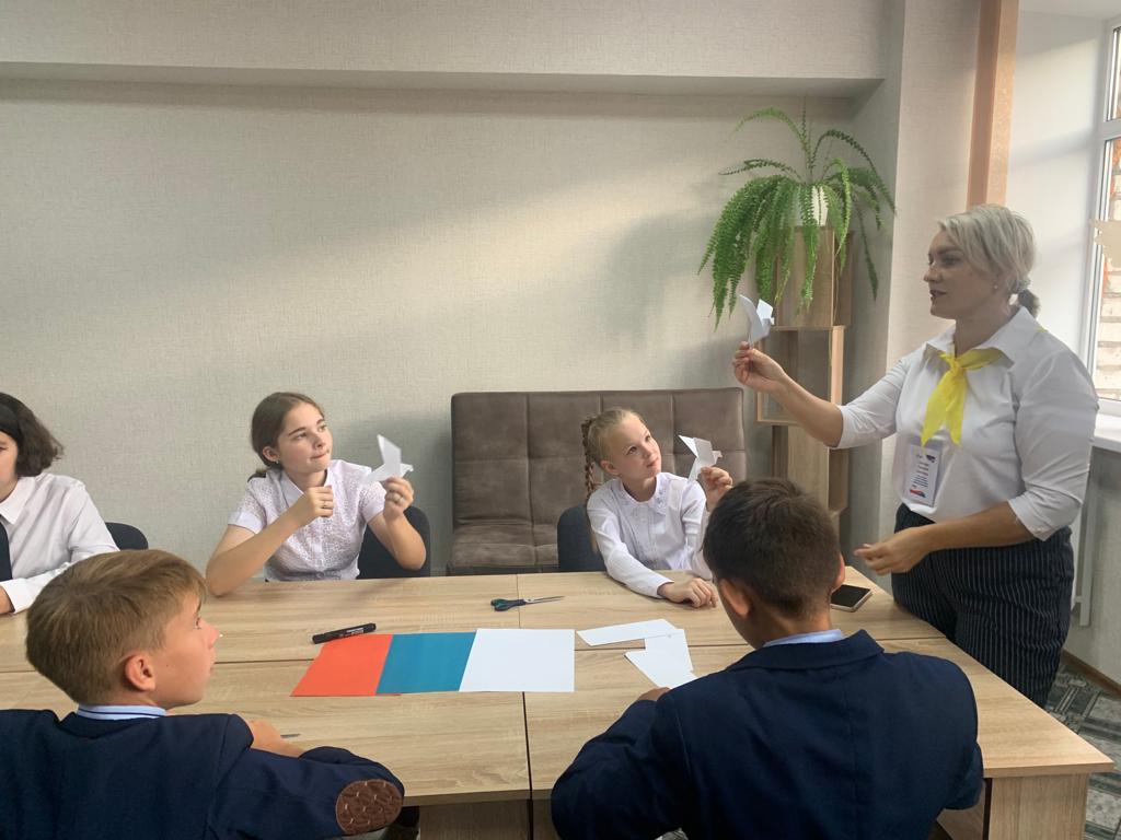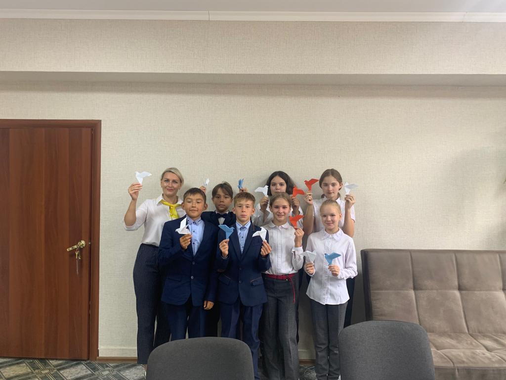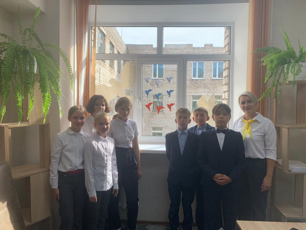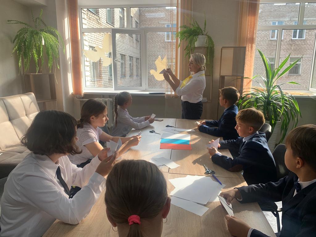 В память о всех невинных жертвах советник по воспитанию Виктория Павловна и учащиеся 6А класса провели акцию «Голубь мира»