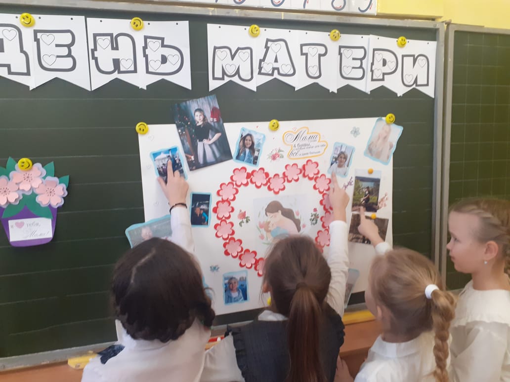 с удовольствием рассказывают стихи про мам, рисуют их портреты и делают подарки своими руками. Учащиеся 5в класса подготовили клип для своих мам , учащиеся начальных классов подготовили корзиночки с цветами! Советник Самойлова В.П совместно с учителем Тукумбетовой Д.М. провели конкурсы для ребят и их мам!